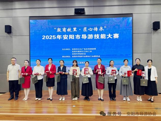 为提升学生的实践能力和专业素质,我院选拔14名学生参加了2025年安阳市“殷商故里·匠心传承”导游技能大赛,和来自安阳市各旅行社、景区、博物馆、高等院校及导游协会的优秀导游同场竞技,在比赛中学习提高,检验教学成果,探索旅游管理专业实践教学的新途径。
