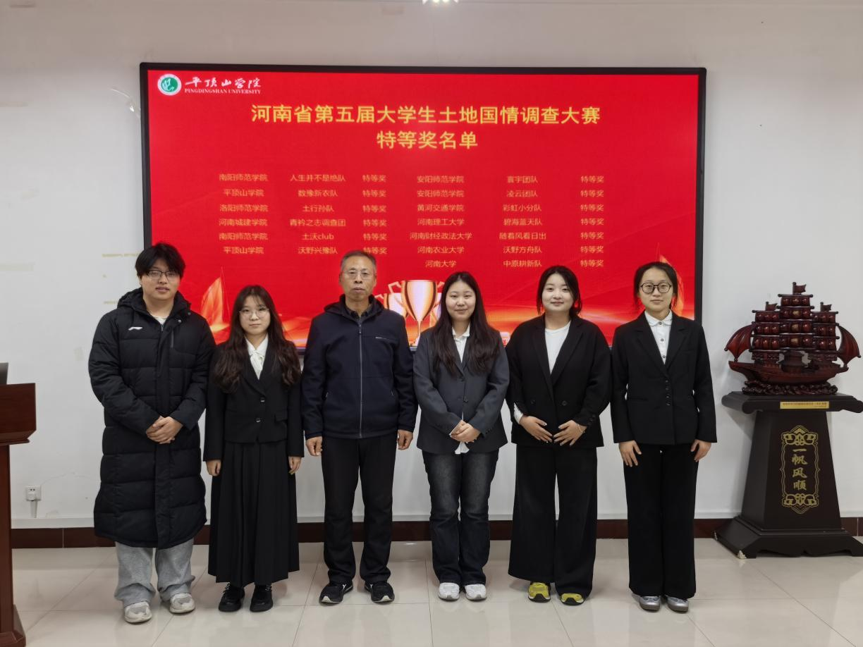 2025年11月16日,“河南省第五届大学生土地国情调查大赛”在平顶山学院顺利举办并圆满落幕。我院学子凭借扎实的专业积淀、出色的实践能力与创新思维,斩获团体特等奖两项、一等奖一项,在赛事中再创辉煌。