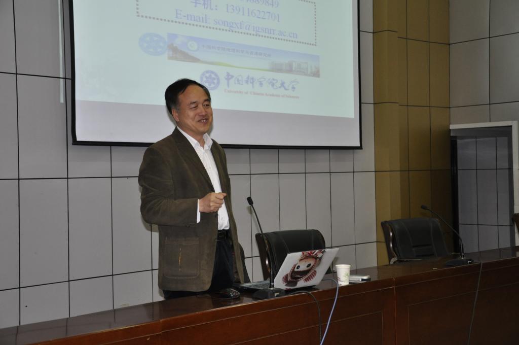 1月12日下午,中国科学院大学宋献方教授应安阳师范学院资源环境与旅游学院邀请,在图书馆一楼学术报告厅做了题为“国科大地理学科简介与区域水循环研究”的报告。报告由资源环境与旅游学院副院长焦士兴教授主持。近两百余名师生聆听了报告。