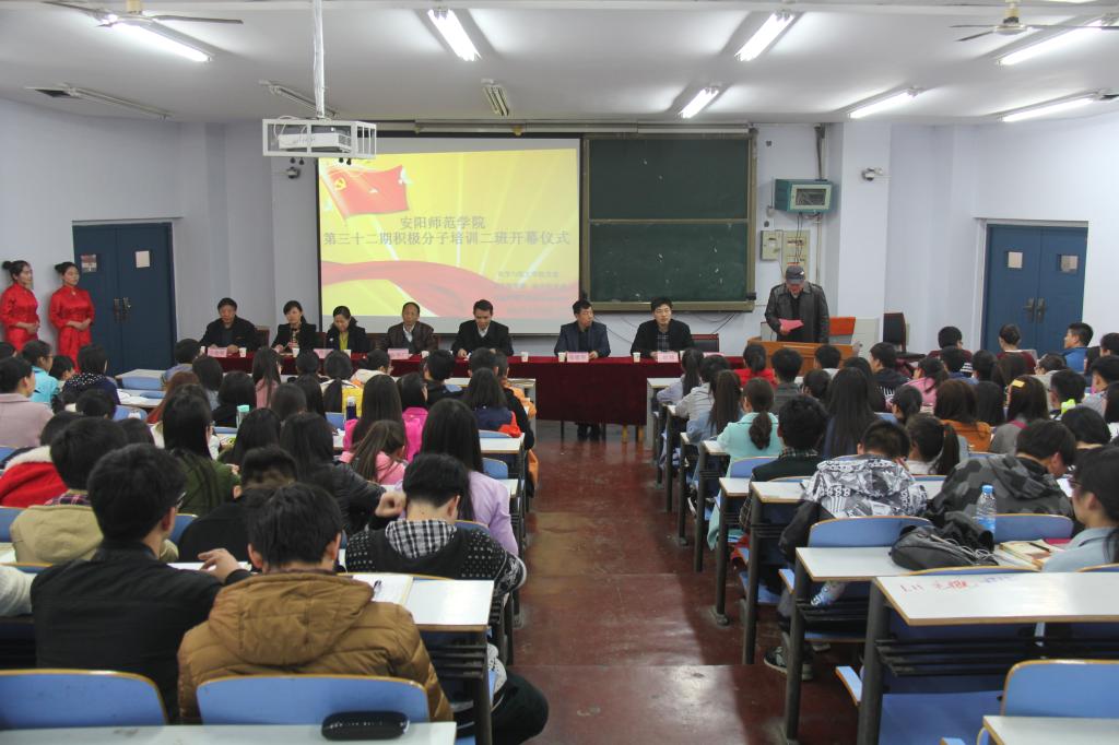 2016年3月18日下午五时,根据校党委组织部下发的《关于举办第32期入党积极分子培训班的通知》中的统一安排,由资源环境与旅游学院党委主办,化学化工学院党委、法学院党委和商学院党委协办的安阳师范学院党委党校第32期入党积极分子培训班二班开班仪式在和鸣阶梯1202室召开。安阳师范学院党委组织部正处级组织员王彬、资源环境与旅游学院党委书记方相林、党委副书记李继文、化学化工学院党委书记邓德华、党委副书记焦安琴、商学院党委书记齐学广、党委副书记时斌和法学院党委副书记张蕊出席了开班仪式,仪式由资源环境与旅游学院党委副书记李继文主持。