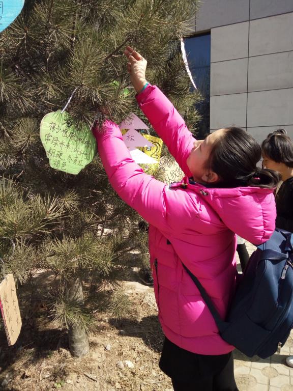 资源环境与旅游学院组织部于3月11日在资环楼门前举办了挂树牌活动,14级15级学生参加了此次活动。