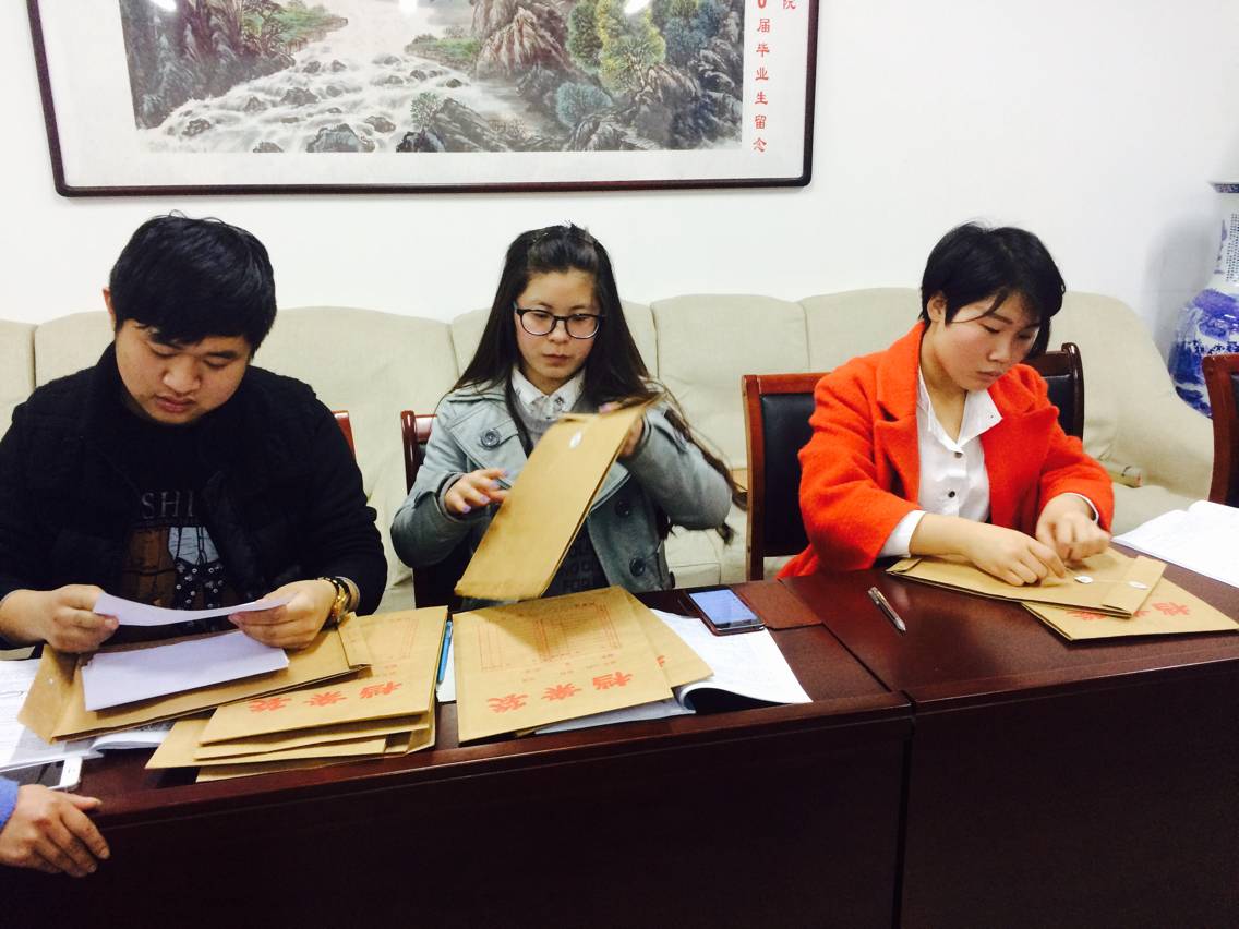为确保每位同学综合素质积分的真实性和准确性,学生干部明确分工,认真审核同学们上交的材料。面对堆积如山的文件,干部们不但没有丝毫怨言,而且对待工作一丝不苟,顺利圆满完成了各项审核工作。