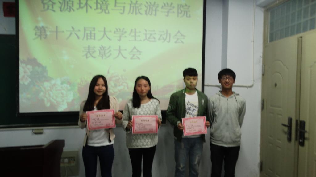 5月8日晚18时30分,资环学院在资环楼102教室举办了运动会表彰大会。此次会议由学生会主席石阳主持,14、15级班长、学生会各部口部长,以及部分优秀运动员参加此次会议。