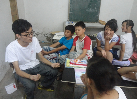 上午8:00,队员们都在认真的给同学们讲课。这已是正式上课的第二天,但仍然有许多同学上课不认真听讲还处于暑假的轻松状态下。为了引导同学们更好地投身于学习中,资环学院义务支教队员们决定在上午第三节统一给学生们开一场班会。在班会上,队员曹永强、李越帅、姜兵等分别为同学们简述了博大精深的周易文化、部分地理旅游知识并且朗诵了诗歌等一系列文化活动,旨在吸引同学们注意力,引起他们对大学的向往,更加全面的向大家阐明学习的重要性。队员们根据学生入学检测的试卷对学生们的学习情况进行了摸底、对学生以后的学习进行了规划,并对学生能更好地学习寄予厚望。班会过后,队员们把班里那些调皮的学生领到办公室谈心,了解了他们的内心,纠正了他们在学习上的误区。
