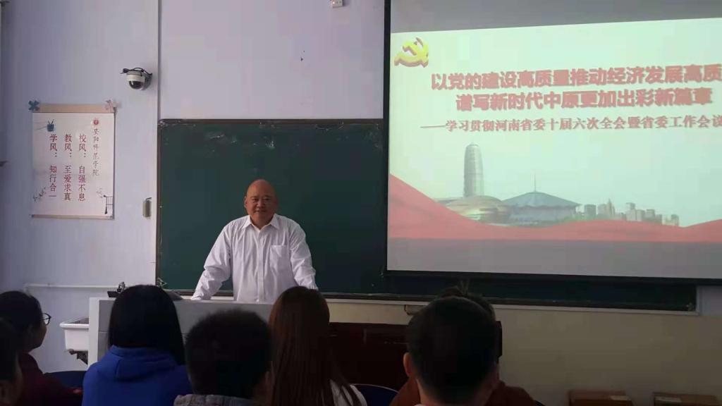 2018年10月26日,资环学院在102教室举办河南省第十届六次全会暨省委工作会议精神传达会,资环学院全体党员参加了该会议,会议由党委副书记李继文主讲。