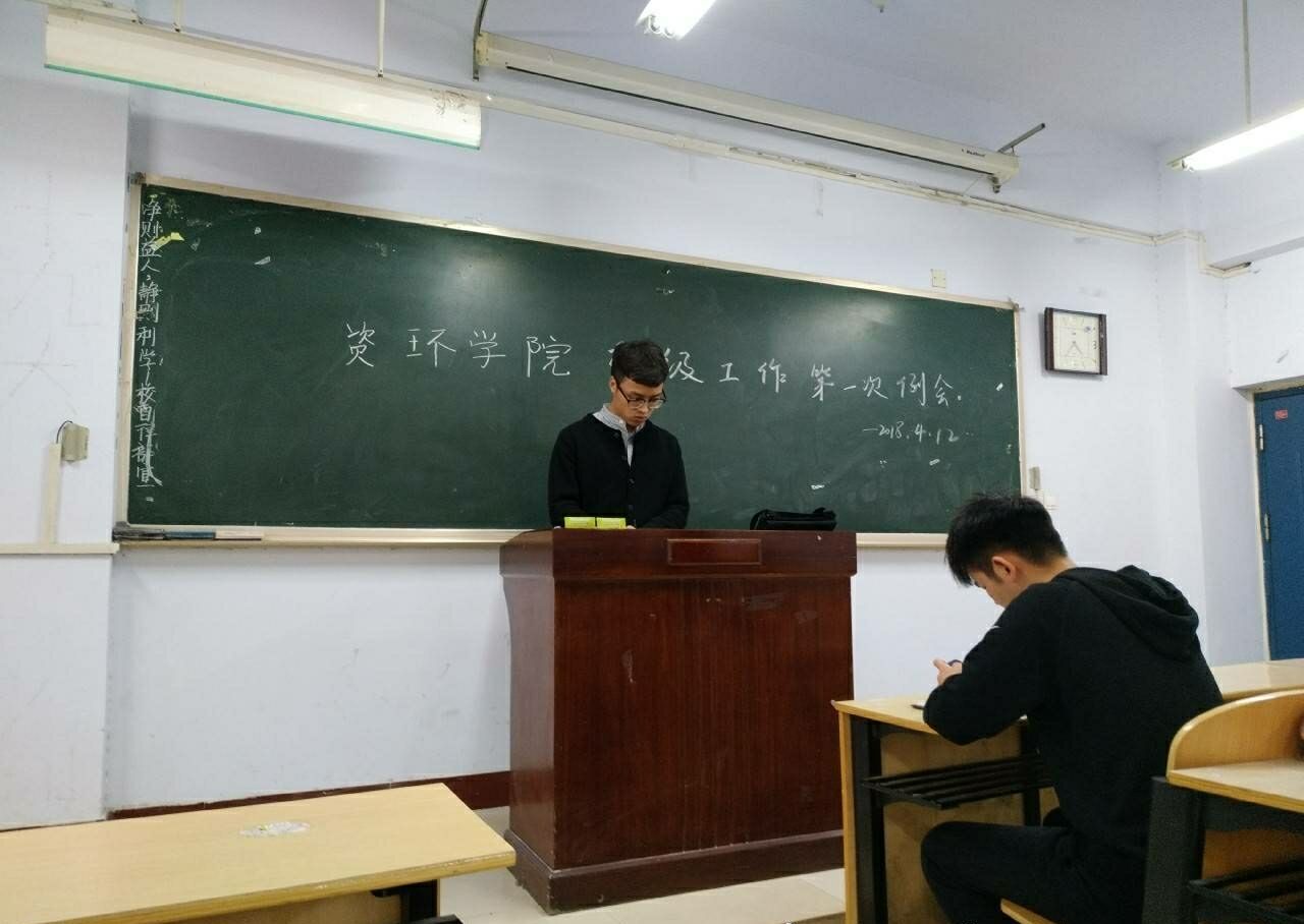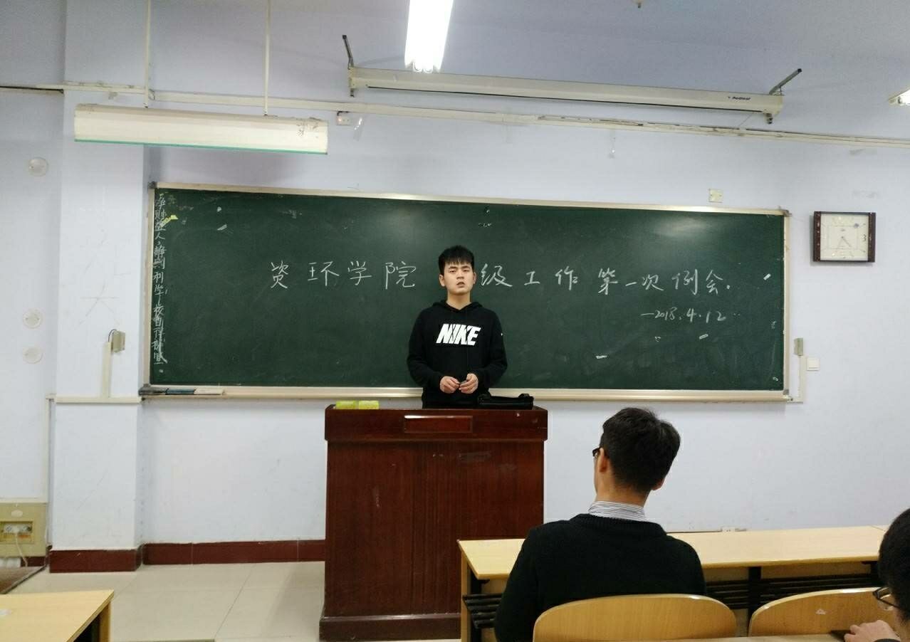 2018年4月13日下午4时30分,资环学院于和展楼B107教室召开了班级工作第一次例会。学生会副主席陈宸主持本次会议,学生会主席张志鹏和体育部、学习部、文艺部各部口干事代表及16、17级各班班干部参加了本次会议。