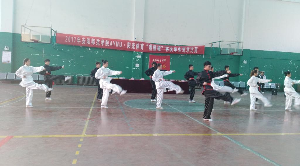 为了丰富校园文化生活,提高学生身体素质,加强各学院的交流,我校于2017年12月2日上午9时在和健馆B顺利举办了AYNU阳光体育大学生武术比赛。我院共有15名选手参加本次比赛。