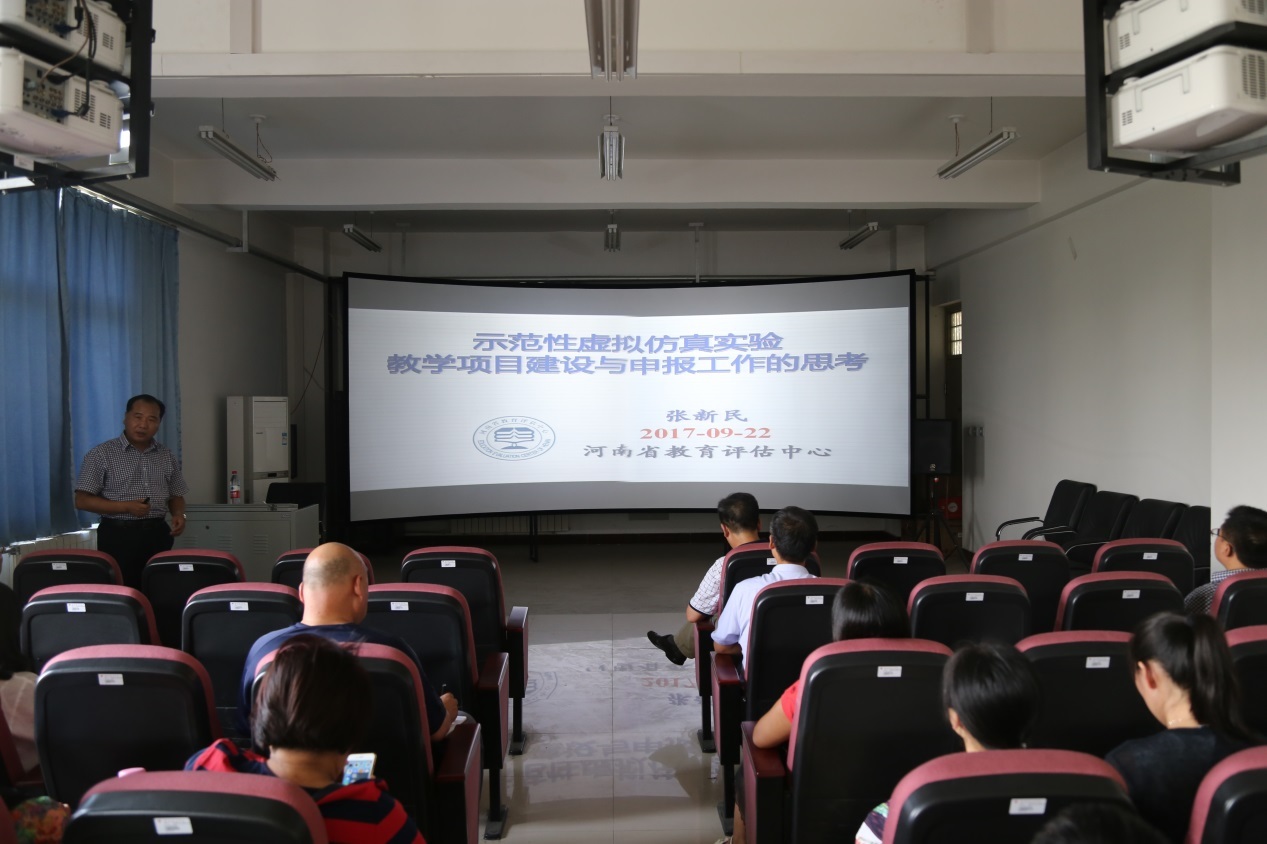 6月22日下午3时,河南省教育评估中心副主任张新民教授莅临我院指导虚拟仿真实验教学工作。报告会在资环楼5楼导游模拟实训室举行,资环学院全体教师参加了会议。