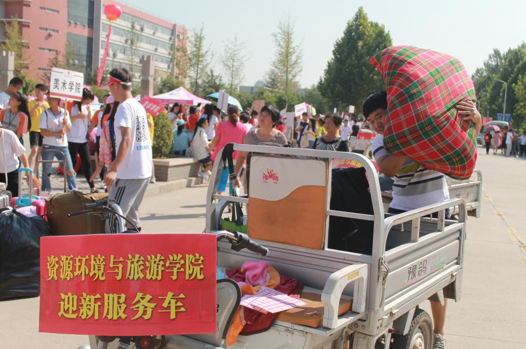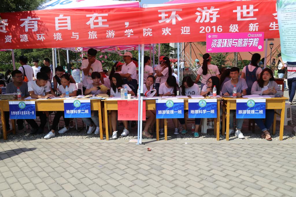 9月10日上午,是迎新工作最为重要也是最为忙碌的时间,不到7点,就有新生前来报道。交材料、签字、核实身份每一环节都有序高效的完成,此后就是资环学院为新生们准备的特色环节了。首先,是抽红包,红包里面都是学姐学长们精心准备的小惊喜,欢迎小16的到来。其次,就是留念墙,每一个新生到来,都会被要求在留念墙前拍照留念,这些照片还会放在学生成长手册里面,成为他们和大学的第一张合影。这些活动完成后就会有资环学院迎新服务队来为新生运行李,而新生也会跟着志愿者们去往她们的宿舍。到达宿舍后迎新依旧没有结束,宿舍会有宿舍承包人在此等待,宿舍承包人会细心说出各种注意事项,引导新生以积极向上的态度迎接即将到来的大学生活。在迎新期间,资环学院院长张吉献、党委书记方相林、党委副书记李继文、学工办主任陈亚、16级辅导员李晓岩多次来此视察,慰问。