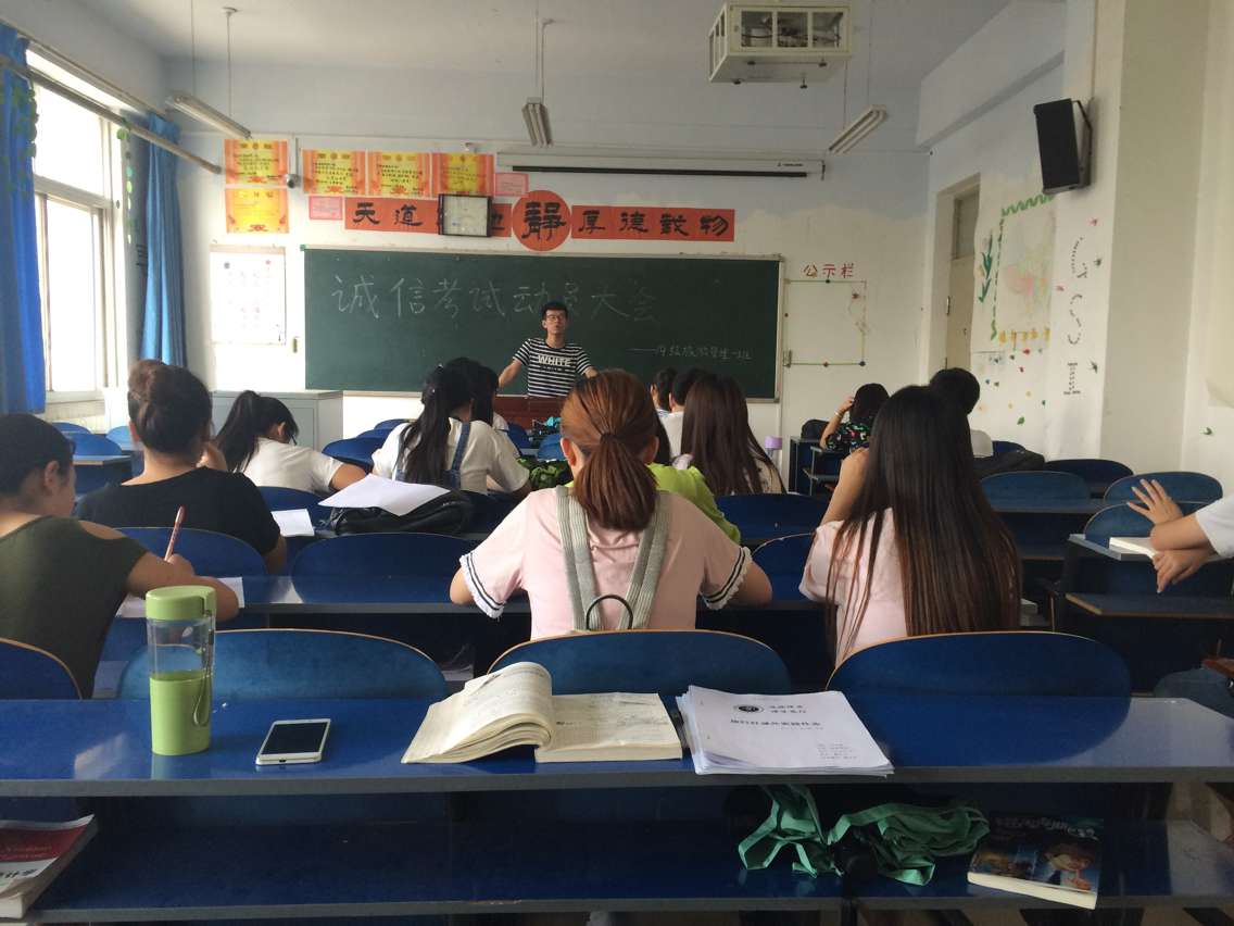 6月29日上午,14级旅游管理一班为了期末考试顺利进行召开了以“诚信考试,严禁作弊”为主题的班会。14级旅游管理一班全体参加了此次班会。