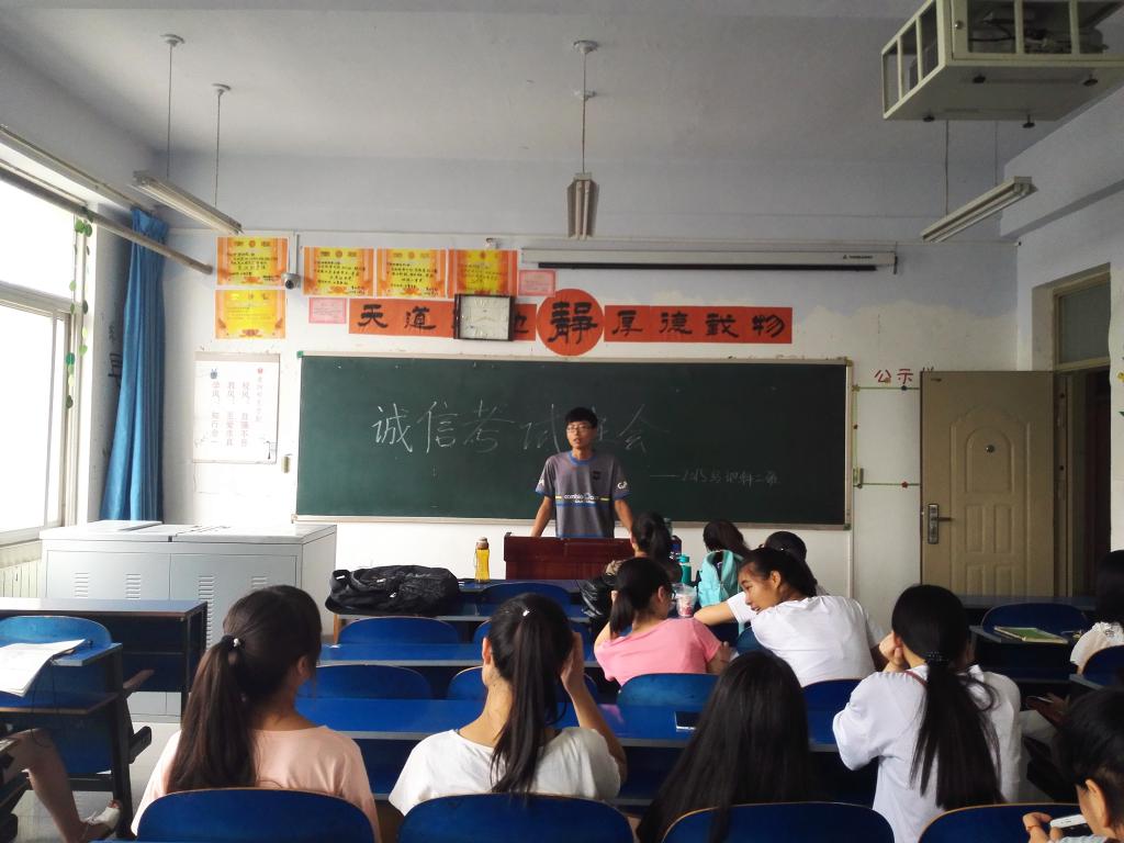 临近期末考试,为使同学们积极备考,重视考试,严肃考风考纪,做到诚信考试,15级地理科学二班于6月30日上午10:00在系办502召开了诚信考试班会。本次班会由班长谢培根主持,地科二班全体成员参加。