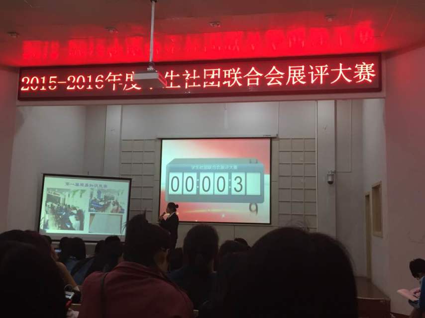 周易研究协会在第三个出场,展评过程由会长讲解并选题答辩,团支书负责PPT播放。展评讲解共分为四部分,第一部分为协会简介,指导老师简介,协会干部组成及协会章程;第二部分为协会日常及活动,其中有上课安排,协会特色活动及团日活动;第三部分为协会宣传,其中有协会微博,及海报制作,最后是协会未来展望,其中为协会工作反思及未来工作改进措施。PPT讲解完毕,进入答辩环节,时间为两分钟,一分钟思考组织语言,一分钟答辩,答辩问题为“你如何看待协会帮扶,并说出利弊”,会长从容答辩,语言流畅,从协会和社联长期发展的角度回答了问题,简洁扼要的说出协会之间帮扶的必要性及利弊分析。