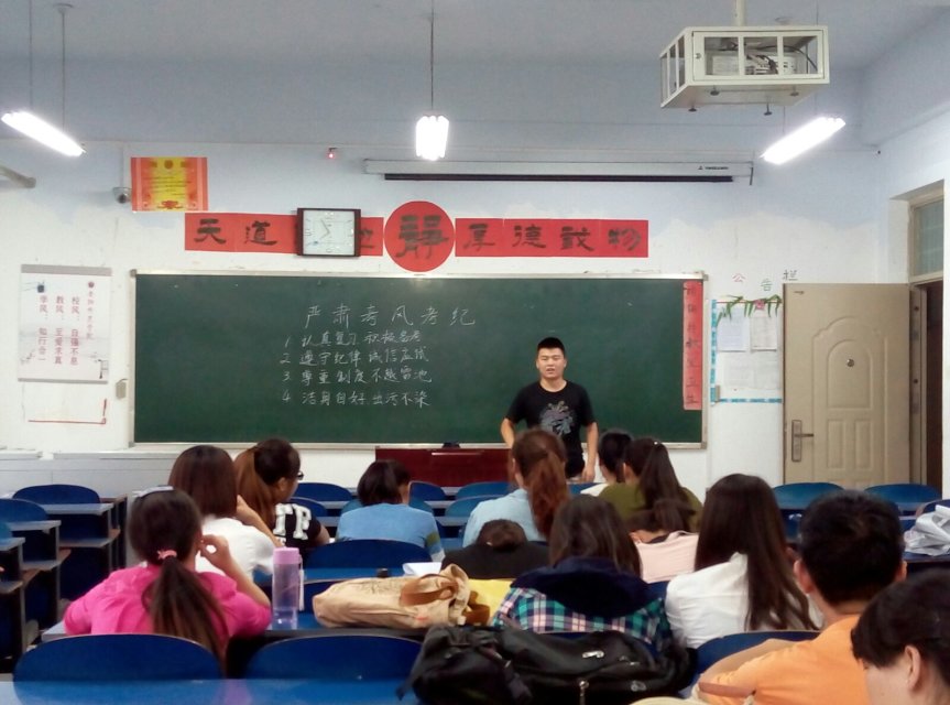 2015年6月24日下午18:00,由地理科学二班召开的“严肃考风考纪”主题班会在资环楼502教室准时开始。13级地理科学二班全班同学参加了此次班会。