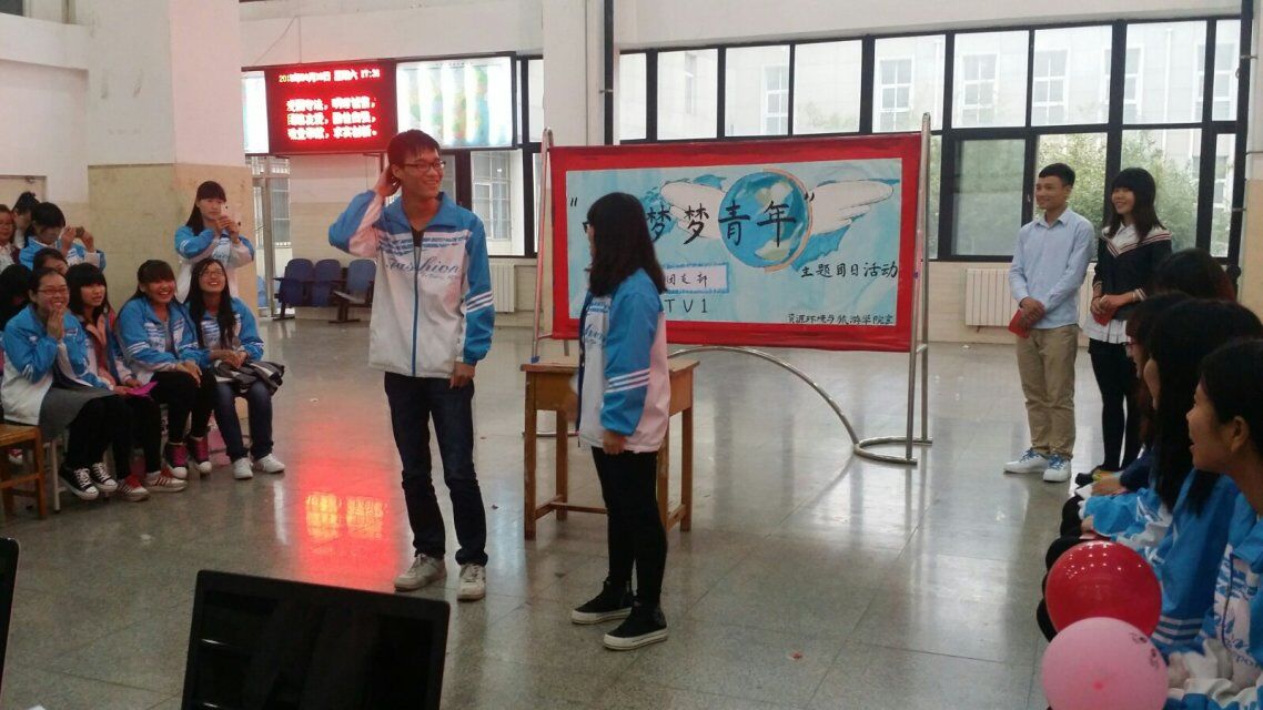 此次团日活动借鉴新闻联播形式,开始前让在座学生共同观看了由该支部成员采访得到的视频锦集,其主要内容是安师学子对中国梦,梦青年的看法以及他们的梦想是什么。随后,主持人进行“新闻简讯”介绍,将活动节目一一道来。第一则“新闻”——《我的中国梦》诗朗诵,随着抑扬顿挫的朗诵,气氛逐渐热腾,展现了当代有为青年的踌躇满志。紧接着,第二则由《红日》、《奔跑》、《倔强》、《青春修炼册》、《我的未来不是梦》等励志歌曲组成的串烧开播,共述该支部成员的梦想之旅。而后,在同学们高涨的热情中,主持人又相继开播了小品、游戏、歌曲等“新闻”。幽默搞笑的小品,激情满怀的歌曲,彰显着14级地理科学一班这个大家庭对生活、对梦想的热爱和追求。
