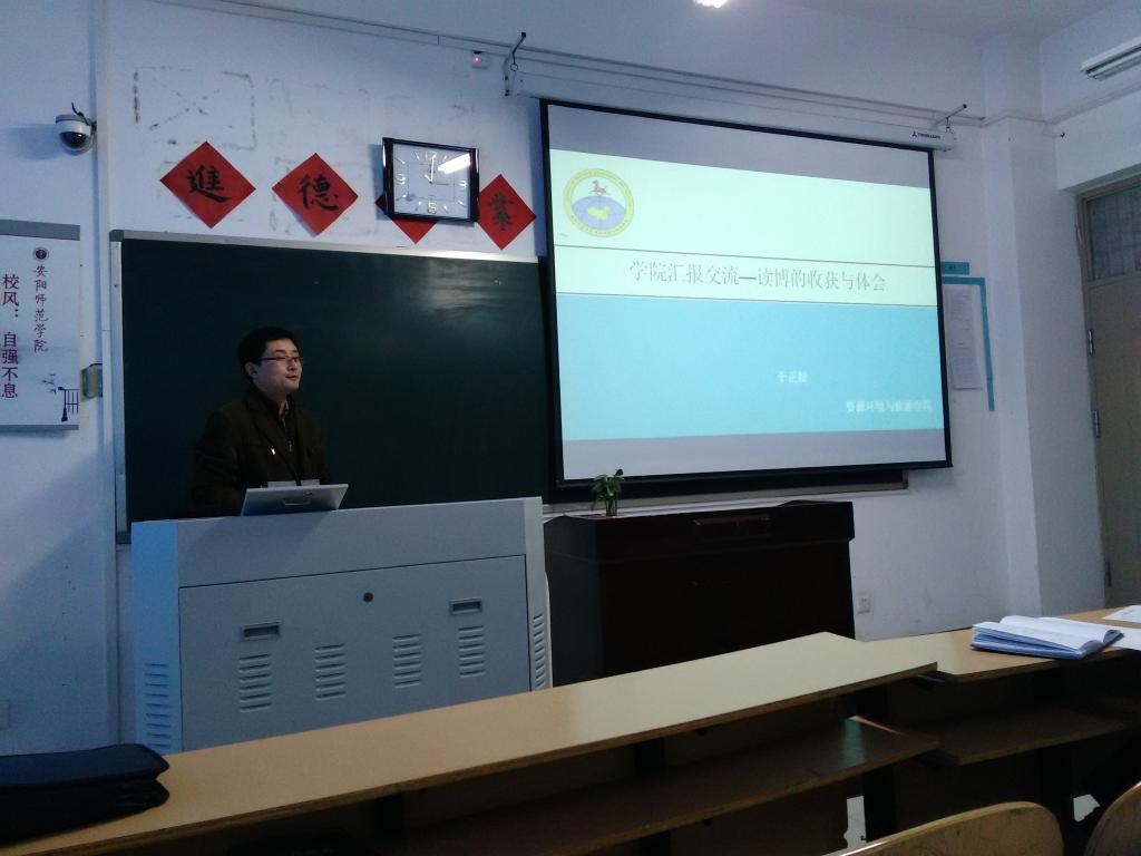 2015年4月10日下午,资源环境与旅游学院院内学术交流会在资环楼204教室如期举行。全体教师参加了本次学术交流。交流会由资环学院副院长焦士兴教授主持。