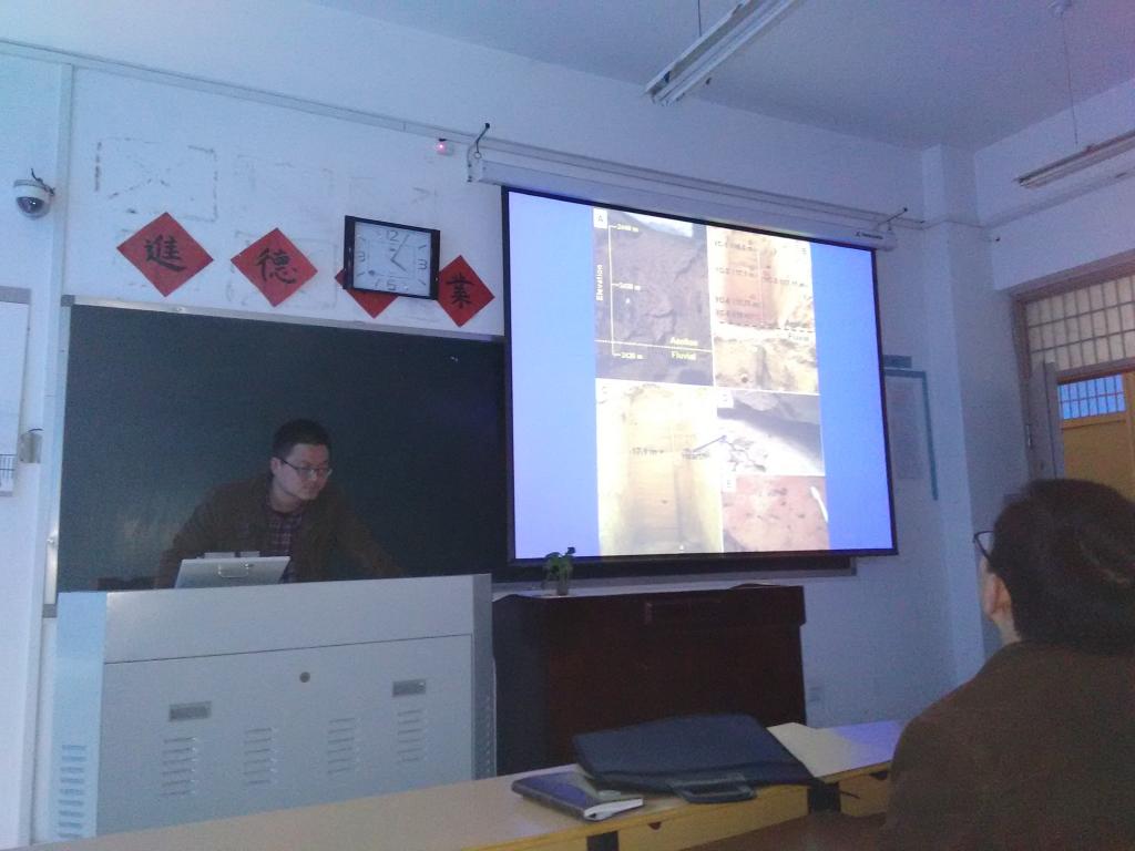 此次交流会由于正松、张志高两位博士分别汇报了自己的学术思想和体会。于正松博士汇报题目为《读博的收获与体会》,与大家分享了自己在西北大学读博期间的经历与体会,还就自己参与的综、横向项目成果进行了展示交流,总结了博士研读对科研能力,学术思维的提升作用;张志高博士汇报题目为《昆仑山北坡羊场剖面黄土粒度特征及古环境意义》。就自己在黄土研究领域中遇到的问题与研究心得同大家作了交流,并和大家讨论了如何立足本校,发挥地域优势选好研究方向等议题。学术会上,两位位博士与各位老师通过互动式交流讨论了各自的学术研究内容。